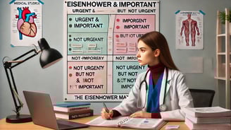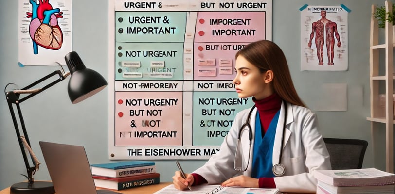 With this in mind, Sara made a list of her study tasks and categorized them. She realized that high-yield topics like cardiovascular pathophysiology belonged in the Urgent and Important quadrant and required her immediate attention. Meanwhile, less critical tasks, like reorganizing her study space, could be moved to the Not Urgent category. This helped her focus on what mattered most and prevented time from slipping away on less crucial activities.