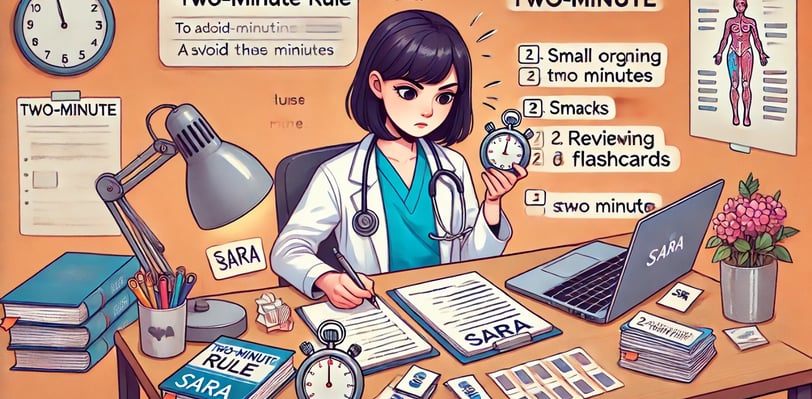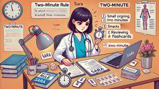 Sara had a tendency to procrastinate on small tasks, like organizing her notes or reviewing flashcards. To overcome this, she applied the Two-Minute Rule: if a task would take less than two minutes, she did it right away. This helped her stay on top of smaller but necessary tasks without letting them pile up.