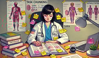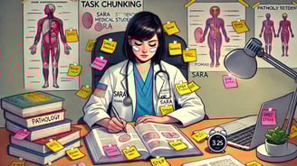 When faced with an overwhelming chapter in her pathology textbook, Sara didn’t try to tackle it all at once. Instead, she broke it down into smaller sections and assigned each chunk to a separate Pomodoro session. This technique of task chunking made the material feel more manageable and reduced her anxiety about completing it.