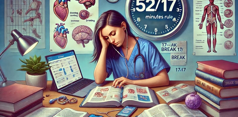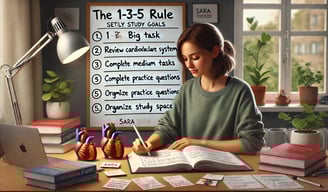 To maintain her energy throughout the day, Sara adopted the 52/17 Rule, which involves working for 52 minutes followed by a 17-minute break. This longer focused interval allowed her to dive deep into complex subjects like anatomy and pathology while the extended break provided enough time to recharge.